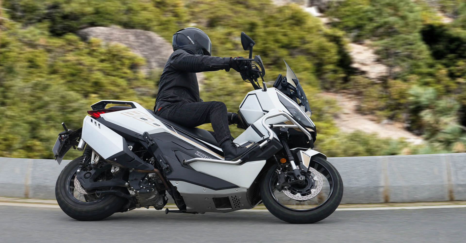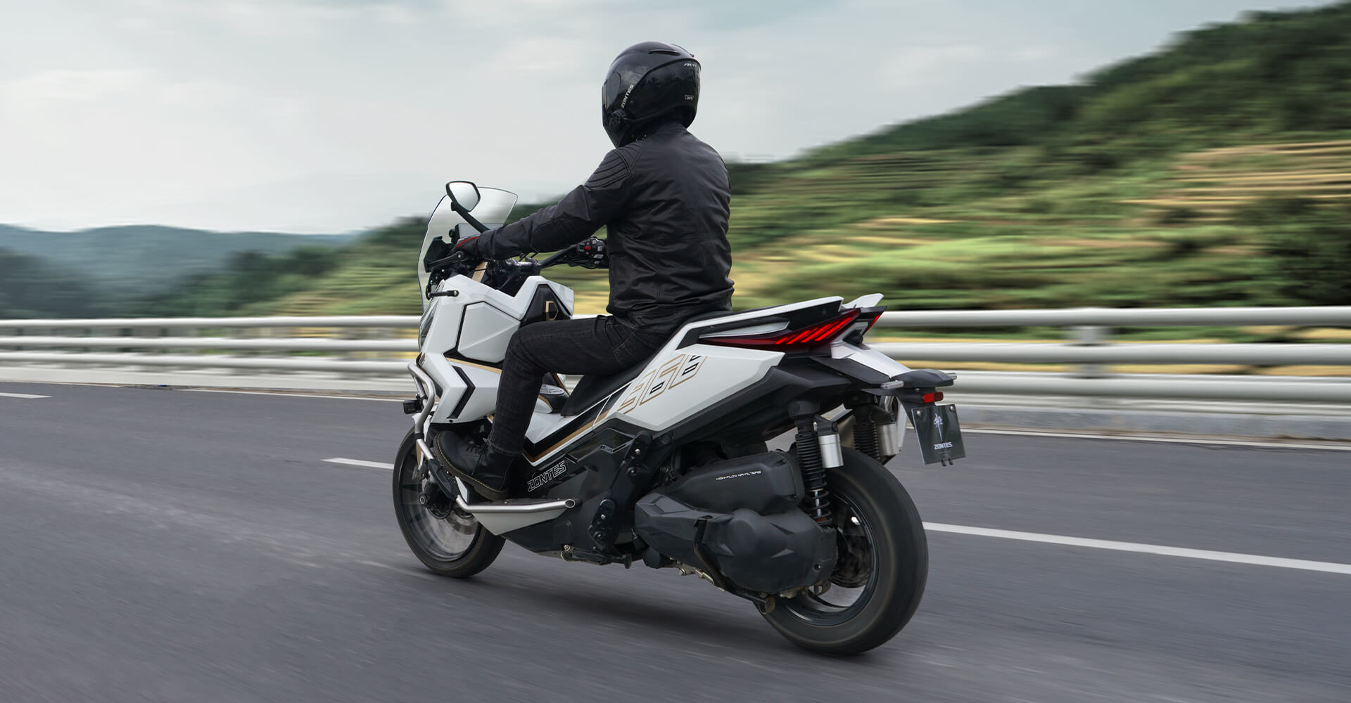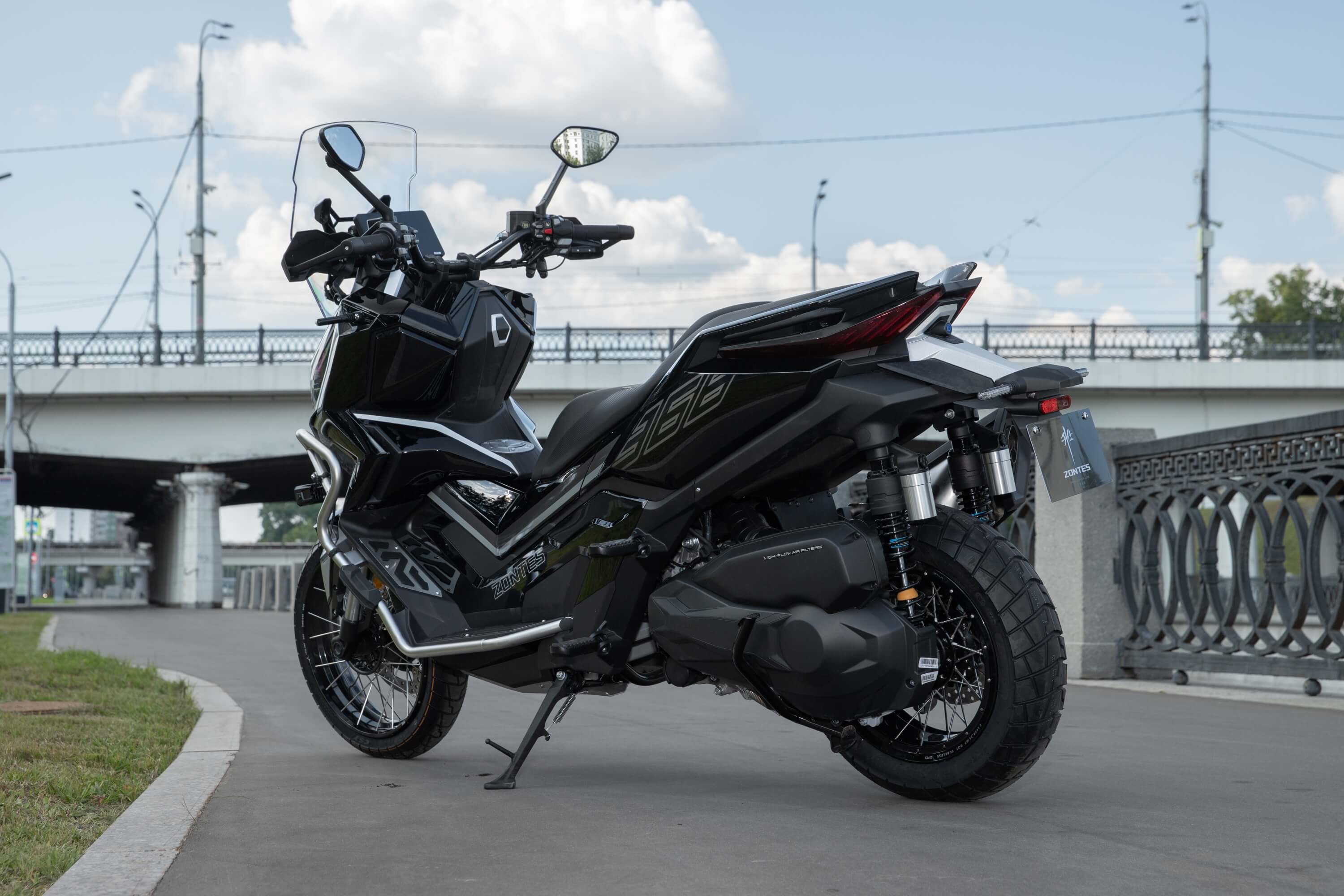 Скутер ZONTES ZT368-G – максискутер двойного назначения, который подойдёт как для города, так и внедорожных ландшафтов. Регулируемая подвеска готова адаптироваться к любым условиям, а перевёрнутая телескопическая вилка спереди обеспечивает высокую устойчивость и управляемость скутера даже на сложных рельефах.
