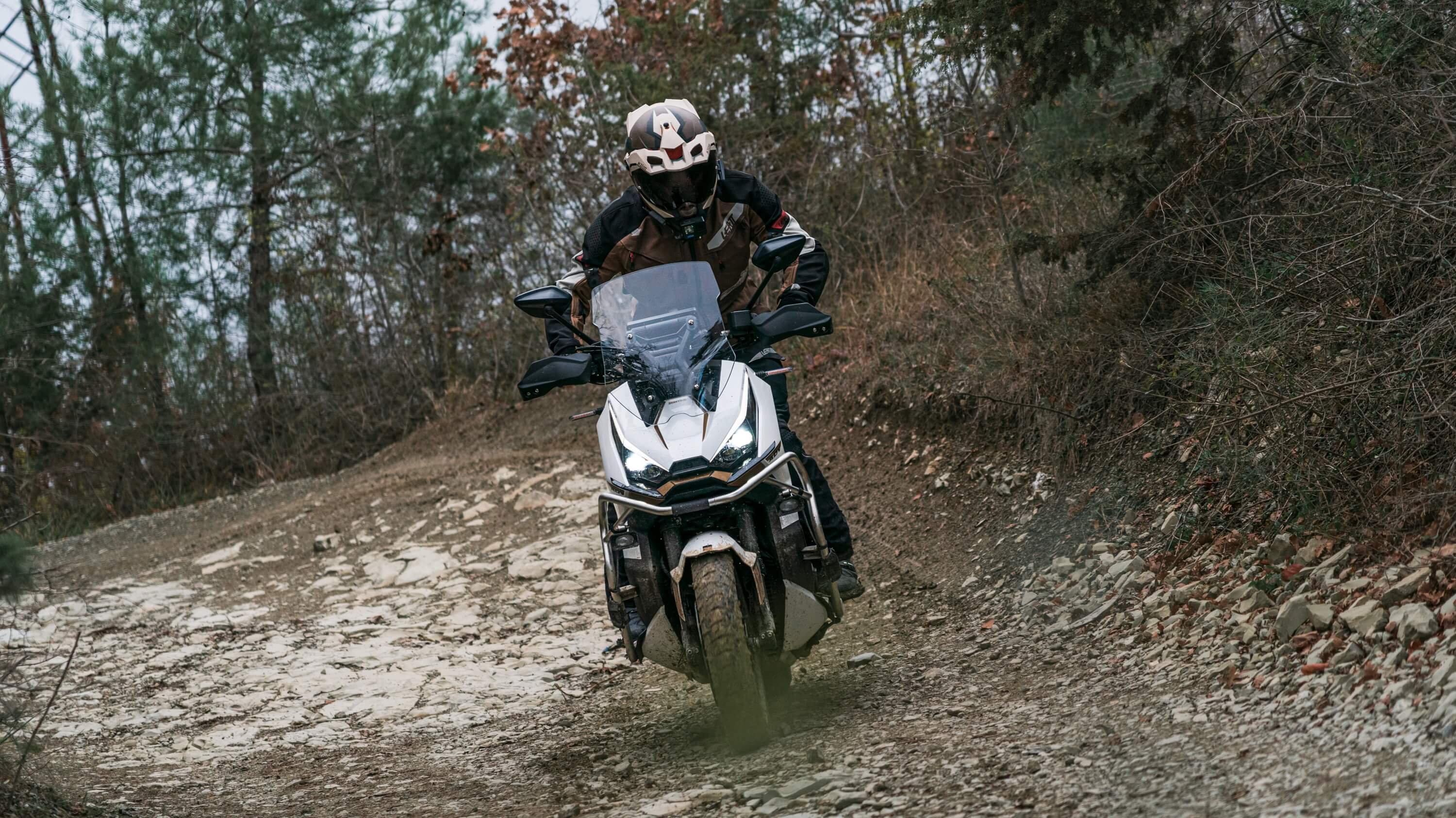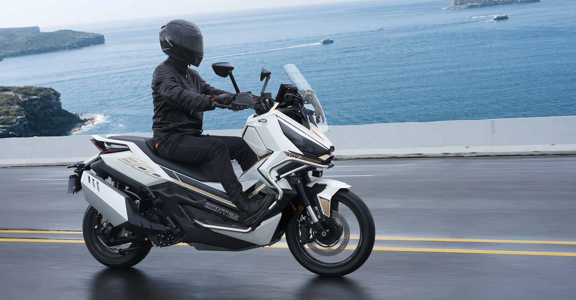 Ходовая часть. На скутер установлены колёса диаметром 17 дюймов спереди и 14 дюймов сзади. Для подвески используется телескопическая вилка перевёрнутого типа спереди и 2 гидравлических амортизатора сзади. Оба компонента регулируются. Для торможения используются дисковые гидравлические тормоза, произведённые компанией J.JUAN (BREMBO), а также 2-канальная ABS-система.