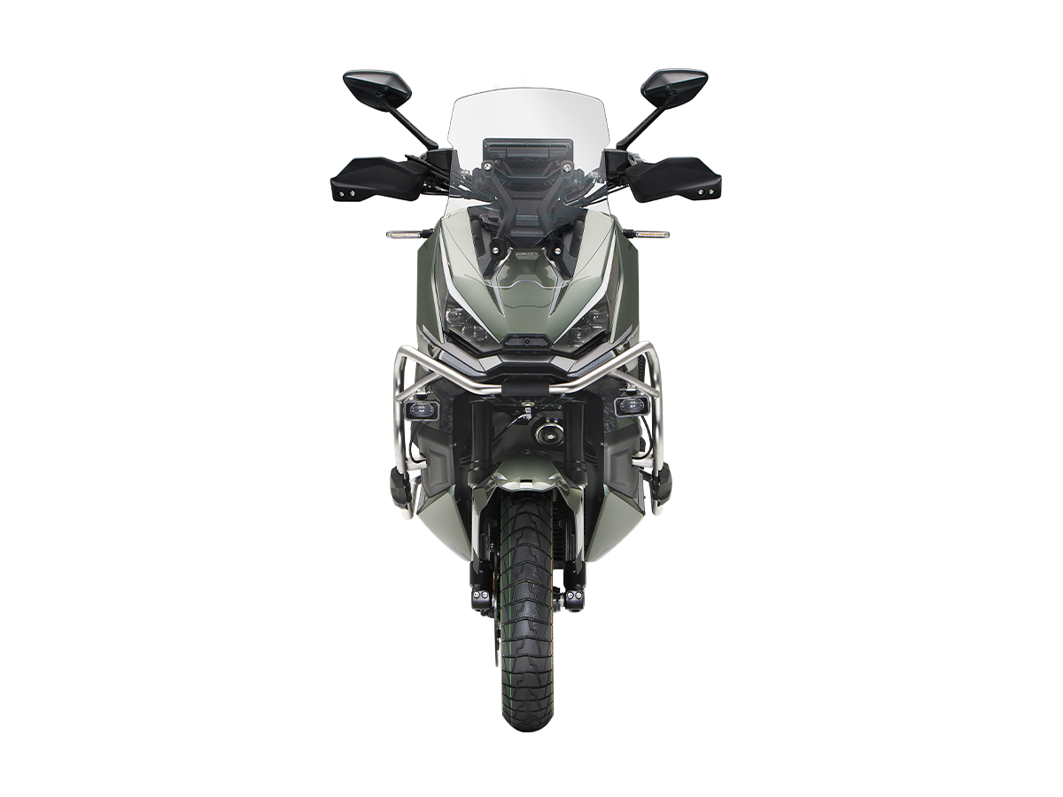 Комплектация. Скутер оснащён противобуксовочной системой TCS System и датчиками давления в шинах. Для фар используется яркая LED-оптика, а приборная панель оснащена цифровым дисплеем. Можно подключить и заряжать устройства через 2 USB-порта.